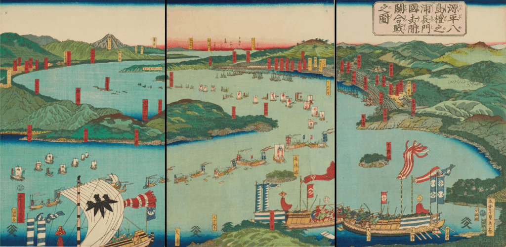 The final battle of the Genpei War took place at Dannoura in the Kanmon Strait. The battle was the highlight of “The Heike Story”.